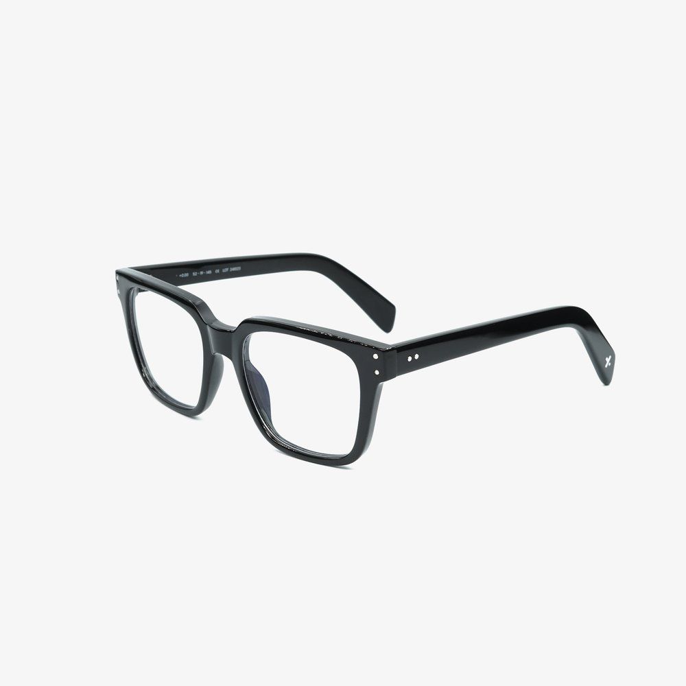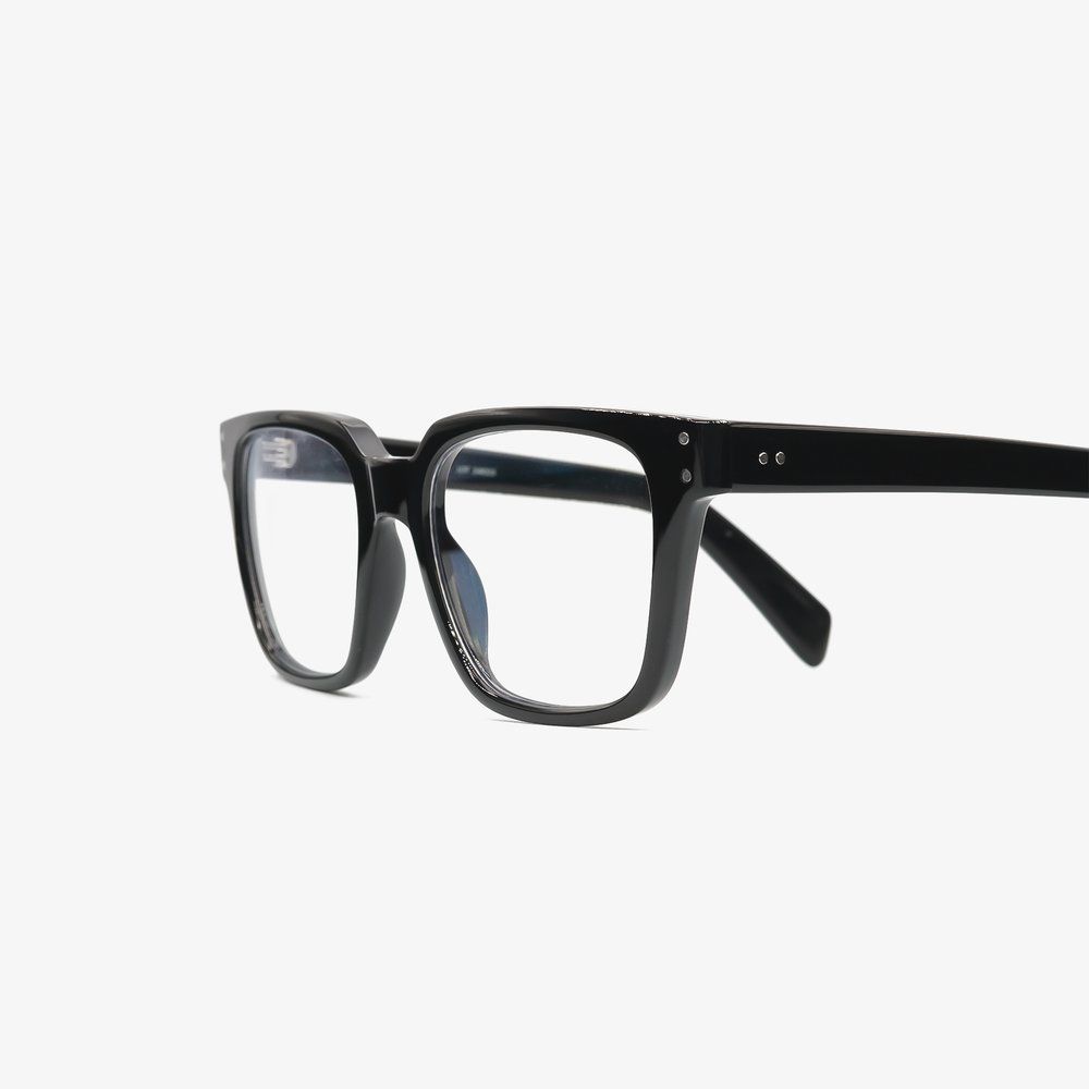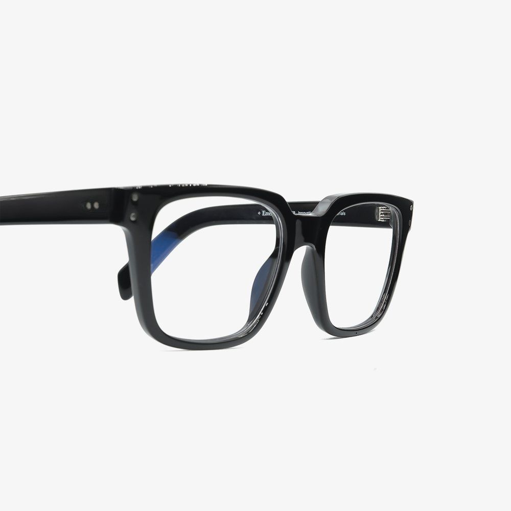 Thick-framed glasses in black with a minimalist and elegant style. Denver, by Emery Optics, offers a simple aesthetic with a modern design, ideal for those seeking functionality without sacrificing style. Made with recycled materials and featuring a built-in blue light filter, they're perfect for protecting your eyes during long periods in front of screens. A comfortable, sustainable, and stylish model, designed for everyday wear.
